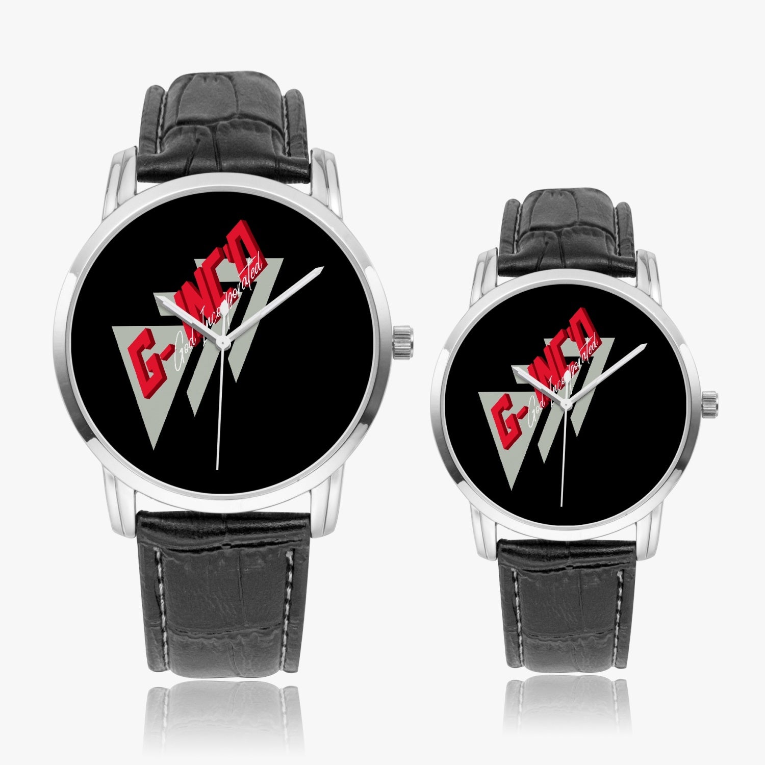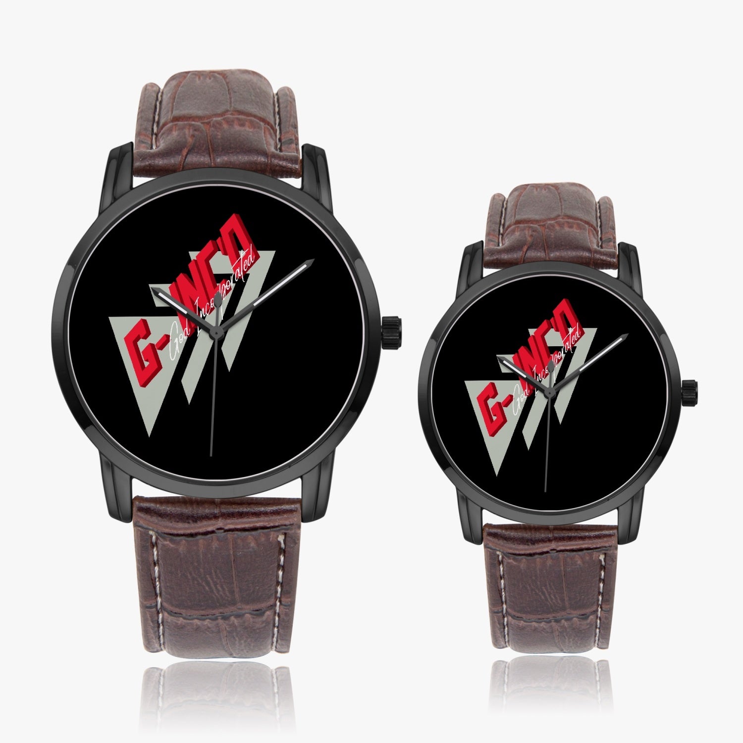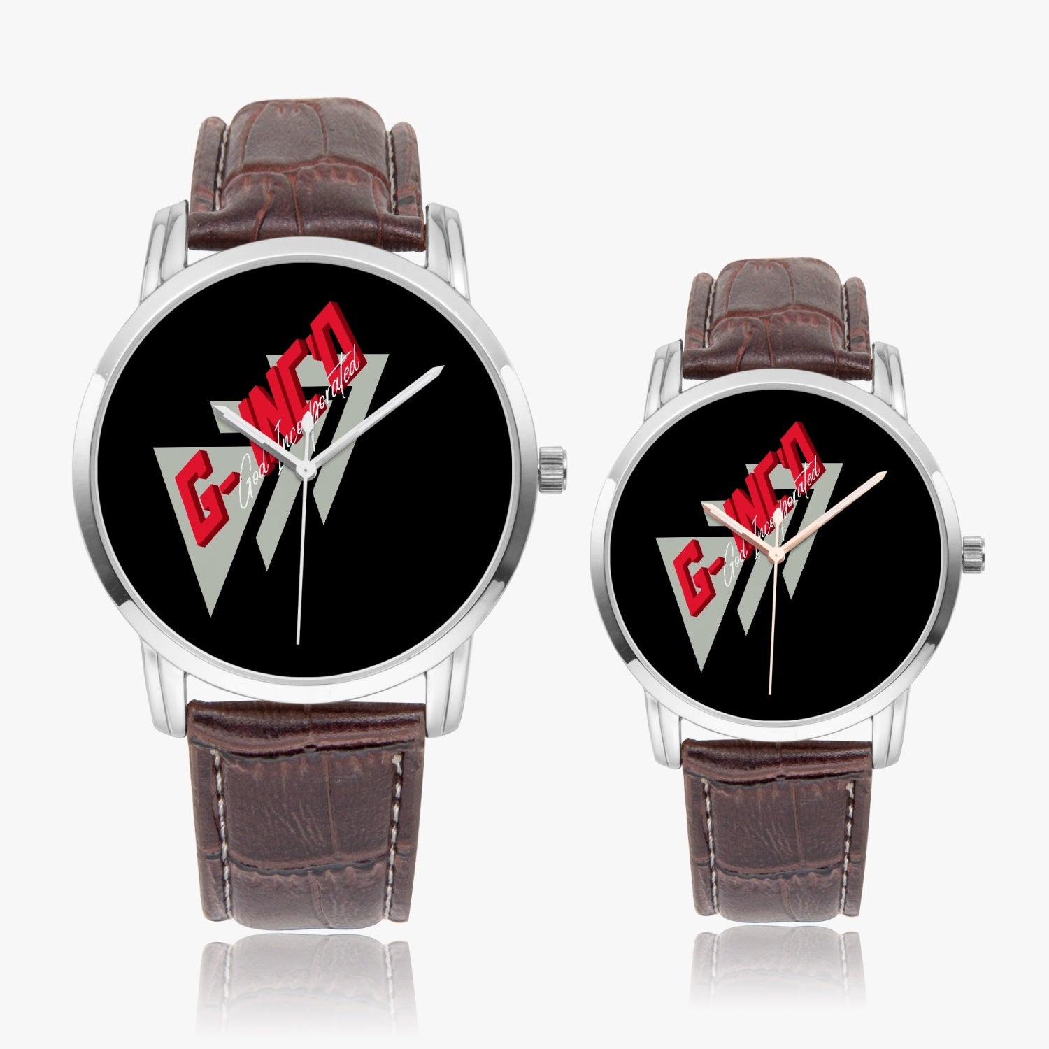 High density 304 stainless steel case and leather bands, electroplated process to get great glossiness and various colors. No allergy.