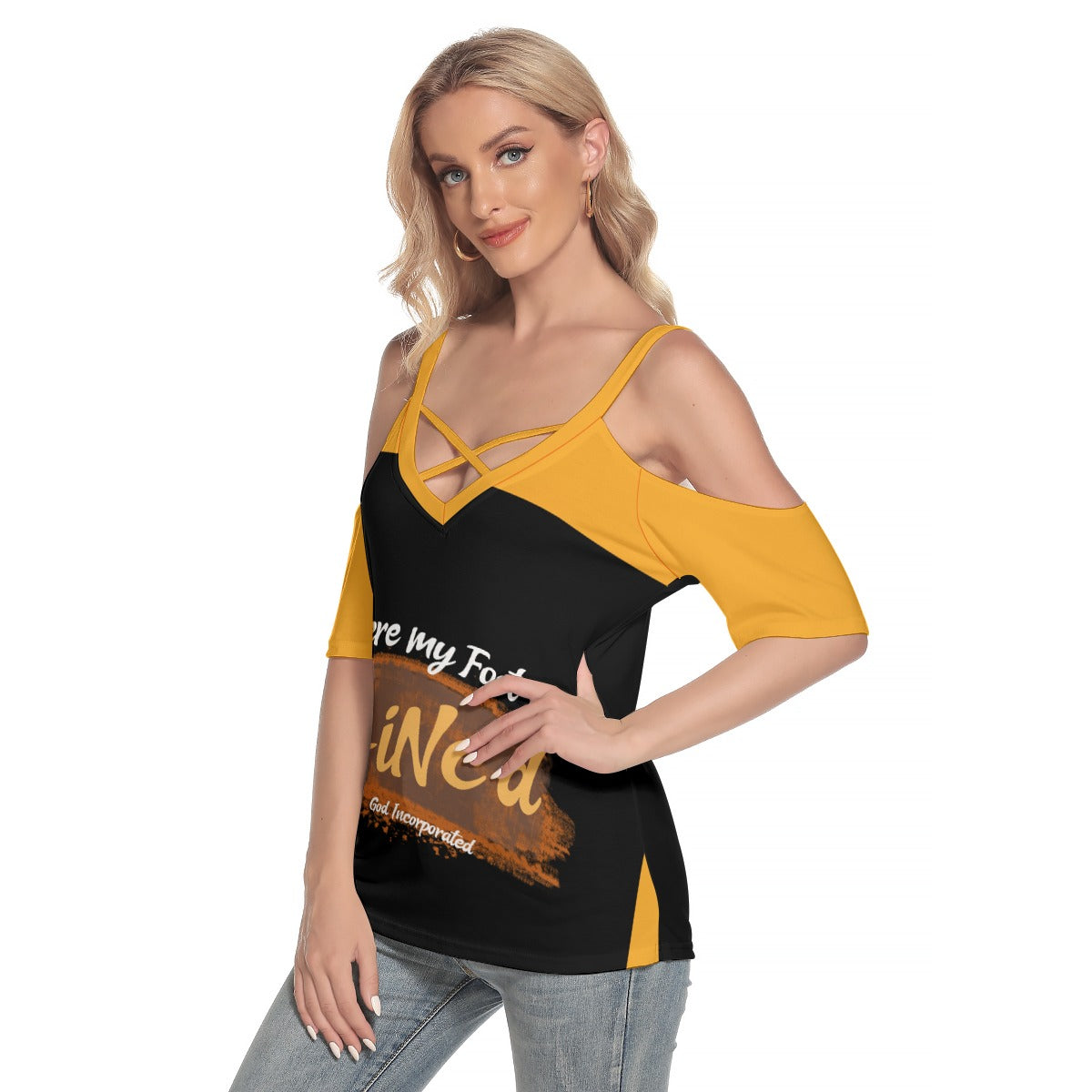 G-Inc'd Women's Cold Shoulder T-shirt With Criss Cross Strips