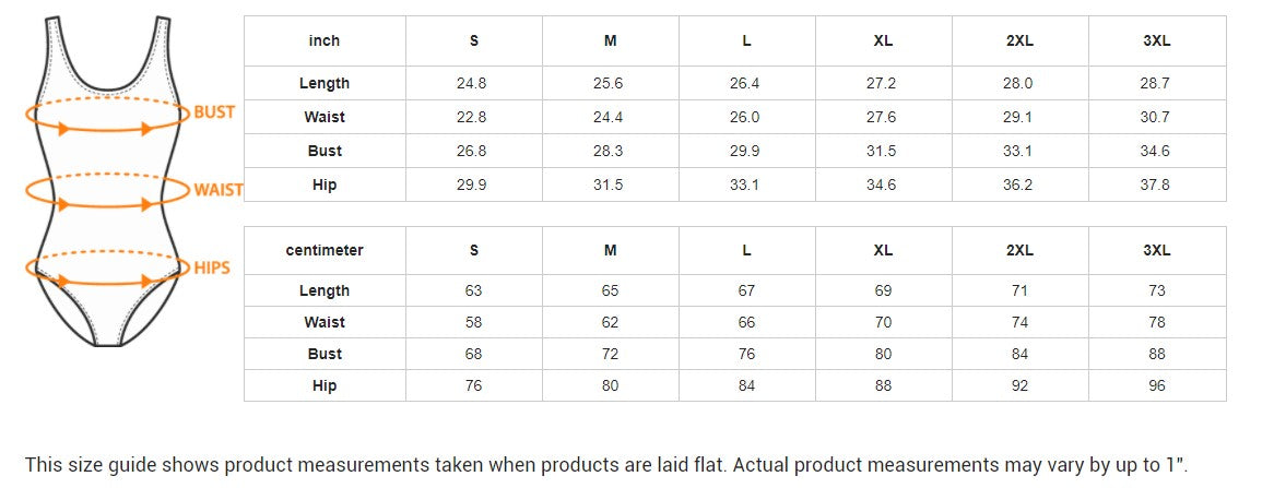 This size guide shows product measurements taken when products are laid flat. Actual product measurements may vary by up to 1".
