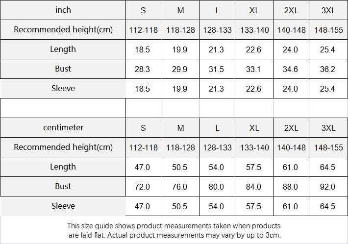 This size guide shows product measurements taken when products are laid flat. Actual product measurements may vary by up to 5cm.