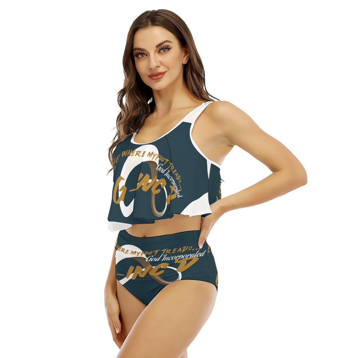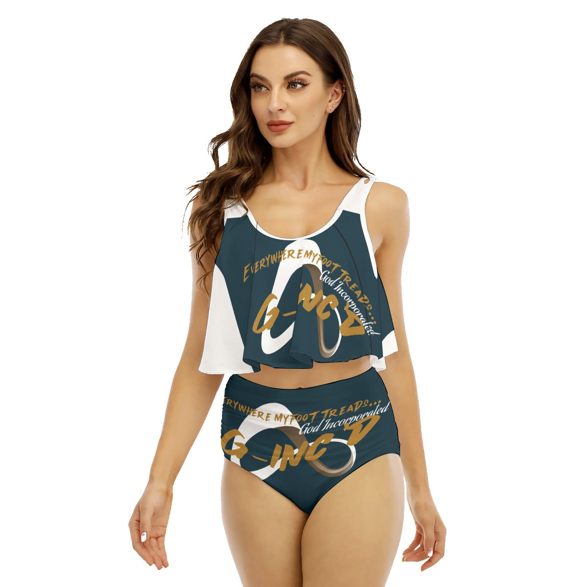 Sexy two-piece bikini with ruffles on the top, suspender top and lining at the bottom